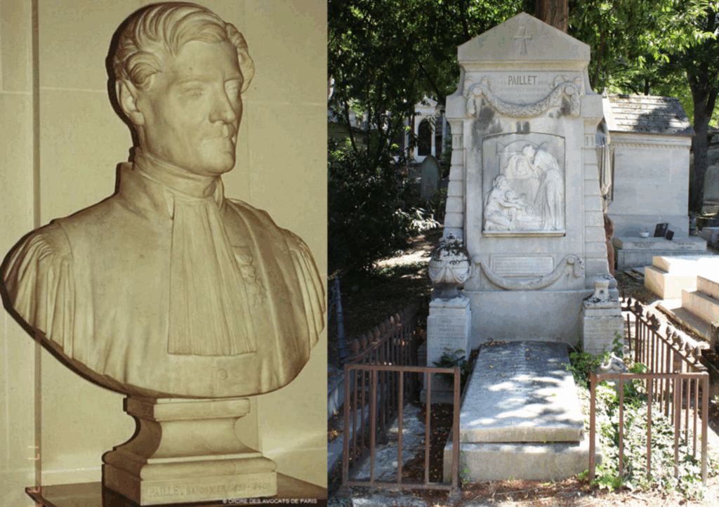 Son buste au musée du barreau de Paris, la tombe Paillet au Père-Lachaise, chemin du Dragon, où reposent les parents Paillet (Barbe-Thé et JF), Charles, Alphonse, Amélie Lefébure (sœur Paillet supprimée entre la V1 et la V2 du roman), Eliza Parroisse épouse Paillet et sa fille aînée Elisa (rebaptisée Alexandrine dans mon histoire). Gabrielle est enterrée dans la tombe d’à côté avec son mari.